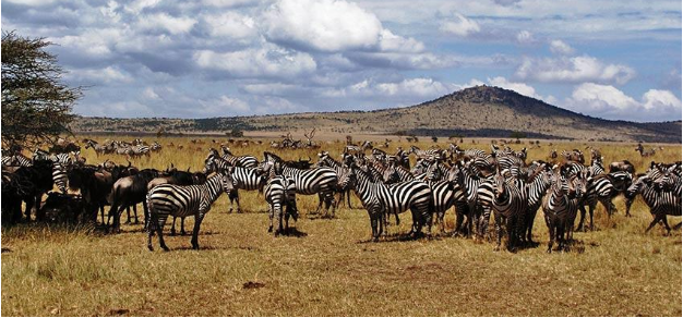 Over 1.5 million wildebeest, accompanied by zebras and gazelles.